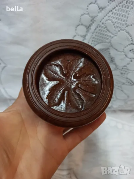 Стари бакелитени поставки за чаши 5 броя в кутия орнамент в средата (релефен).Цена 60 лв