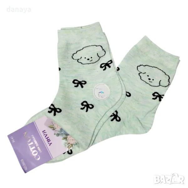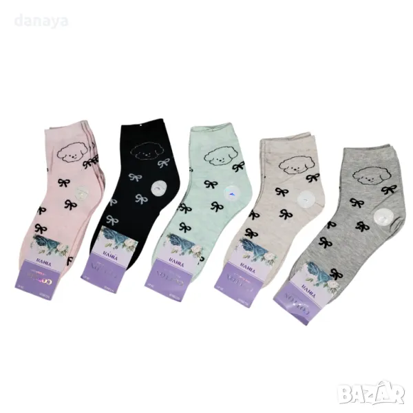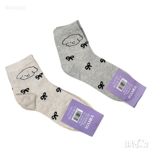 Памучни дамски чорапи с красива декорация панделки и малка картинка на агънце. Чорапите са универсален размер 36-41 номер.