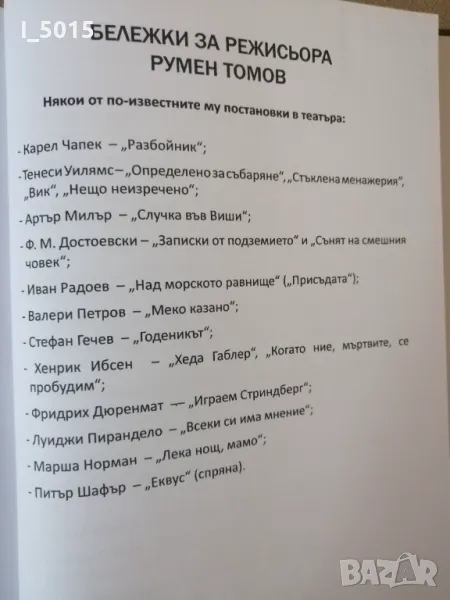 Паметта на режисьора Румен Томов заслужава да бъде популяризирана също и втората му книга, която той написа в края на лятото на 2024 г. - "За занаята на режисьора" (2025), достъпна на https://bazar.bg/obiava-53305728/za-zanaiata-na-rezhisora-rumen-tomow.