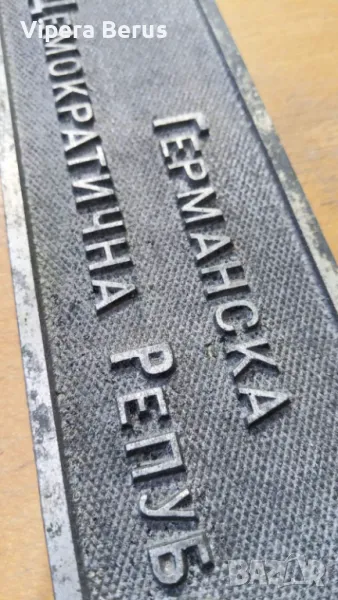 Алуминиева табела от немски електрически локомотив. Лимитирана серия и надпис на български език. Над 50 годишна. Отливка с немско качество, и отлично състояние. Размер - 30х7,5 см. Изпращам САМО с Еконт!