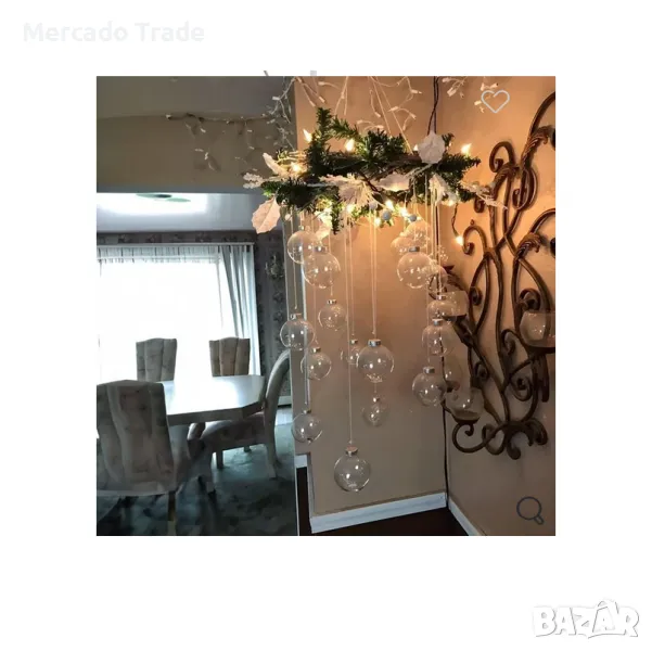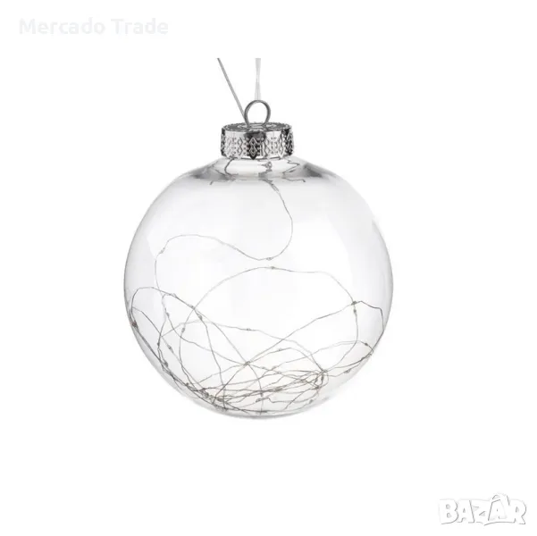 Прозрачна коледна топка Mercado Trade за коледна елха, украсена отвътре с 40 светодиода, които се активират с бутон в отделението за батерии.