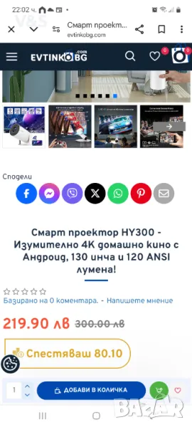 Смарт проектор HY300 - Изумително 4K домашно кино с Андроид, 130 инча и 120 ANSI