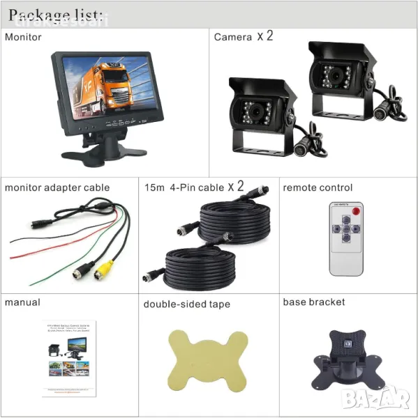 Система за задно виждане с 2 камери и монитор за Камиони Бусове Каравани
