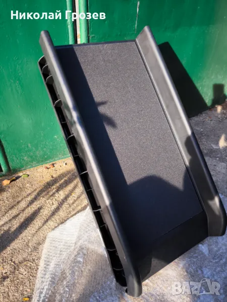 Стабилната рампа може да носи товар до 90 кг и също така може да превозва по-големи и по-тежки кучета без никакви проблеми. Собственото тегло е малко 5 кг.