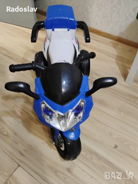 предлагам детски мотор Мониползван само в домашни условия като нов е размери 96х46х60Тегло 9 кгМаксимално тегло 30 кг Възраст 3 години +За деца от 37 до 72 месеца с максимално тегло 30 кгБатерия 6V7АhДва мотора 2х380 1 скорост 4,5 km/hЗадна кошница за играчки Превключвател за включване/ изключванеМузикални функцииОпция за регулиране силата на звука