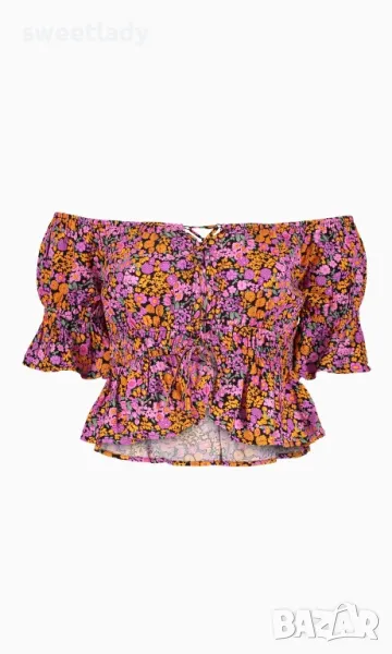 Блуза с щампа на цветя и ластик → Обява 47948342