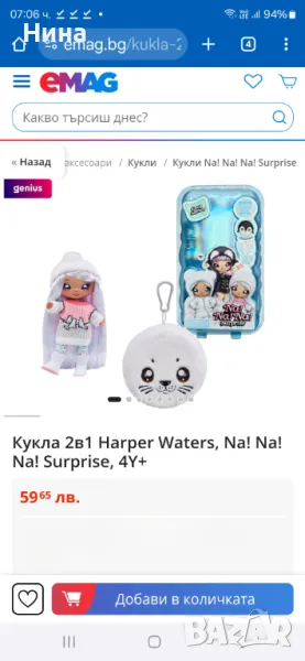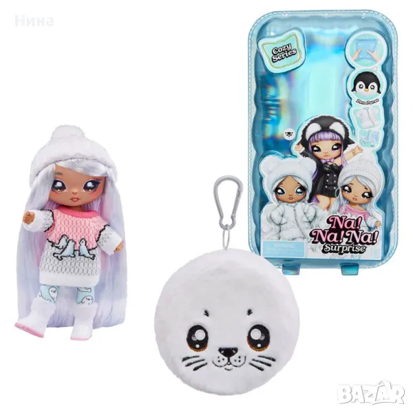♥️ Harper – Зимата е тук, както и модните кукли 2 в 1 от серията Na Na Na Surprise Cosy с пухкави портмонета. Уютна и сладка, Харпър Уотърс има великолепна лилава коса, лице с печат и тоалет, вдъхновен от тюлени