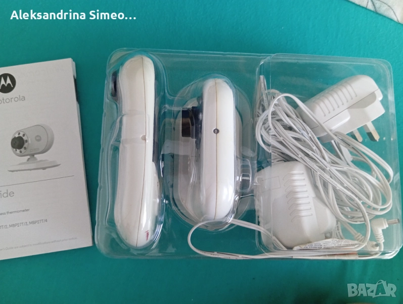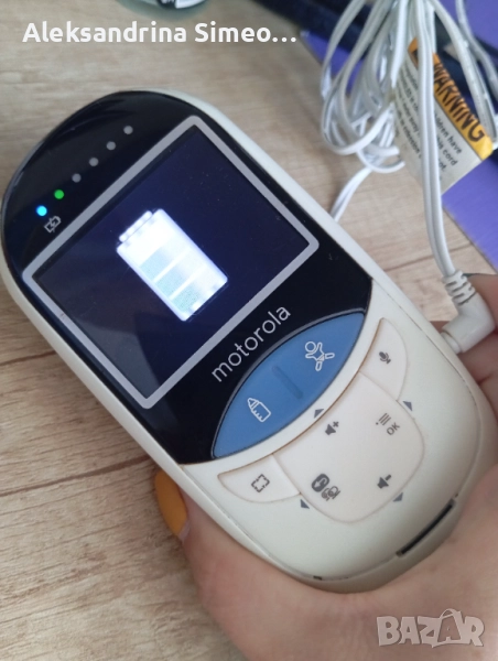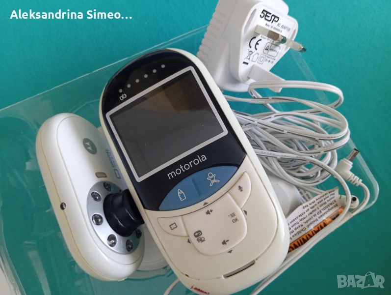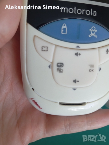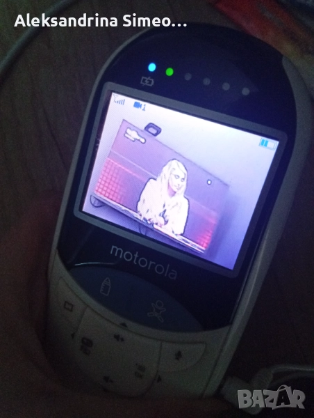 Бебефон Моторола. Има опция да измерва температурата на детето и на млякото. Може да говорите през устройството и детето да ви чува. Камерата е цветна.