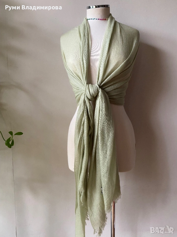 Бледозелен шал от 100 % агнешка вълна, Monte Cristi, фина и дюс материя, голям размер, доставка с Еконт, цена 15€.