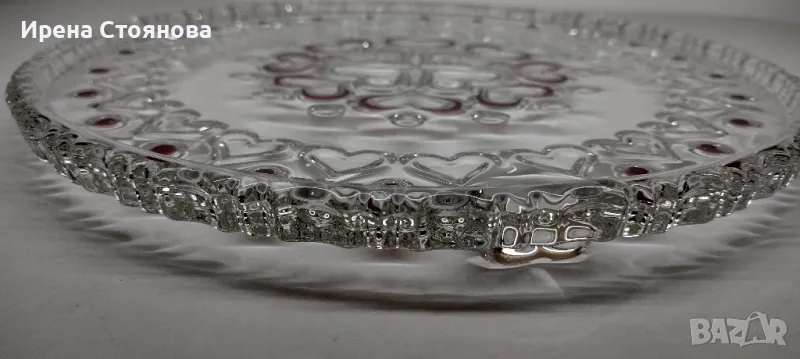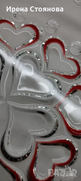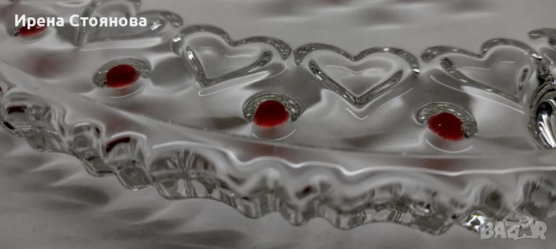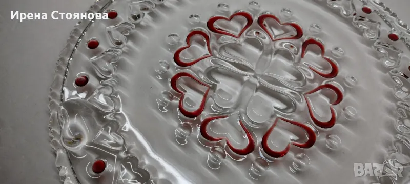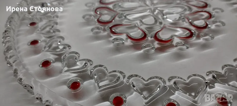 Красива, елегантна с декор червено сърце от серията "Sweetheart Ruby" и стъклени крачета във форма на сърце. Диаметър 30 см. В много добро състояние, на места минимални, незабележими следи от употреба/съхранение. Цена 50 лв.