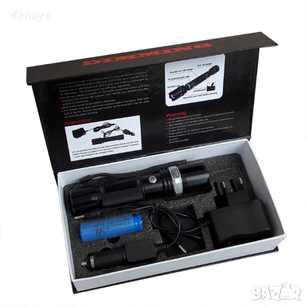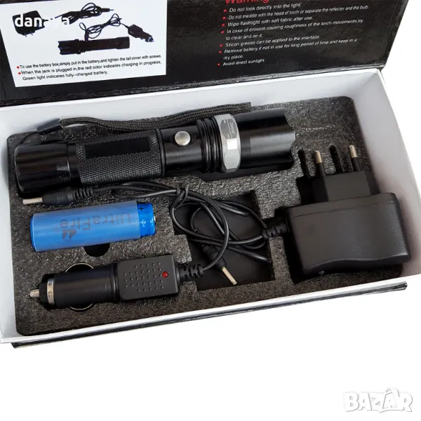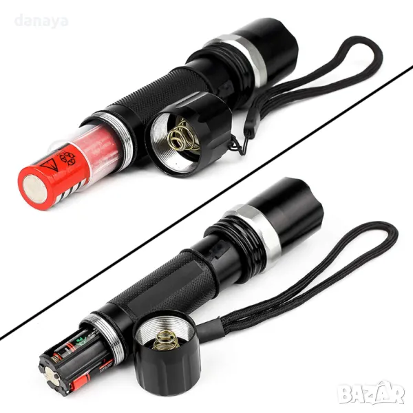 Мощен led фенер със ZOOM функция и 3 режима на светене – силна, слаба и мигаща SOS светлина. Фенерът е подходящ за къмпинг, лов, риболов, ремонтни дейности в гаража, разходки вечер и т.н.
