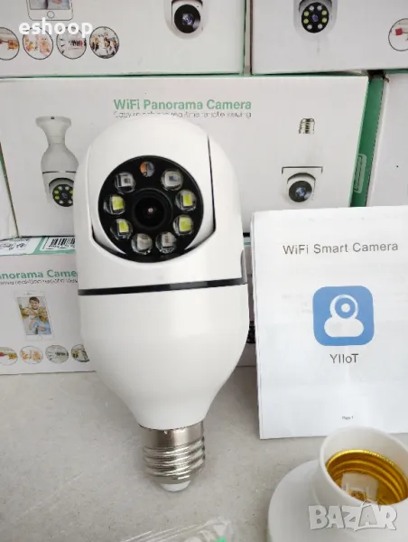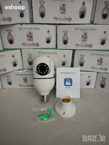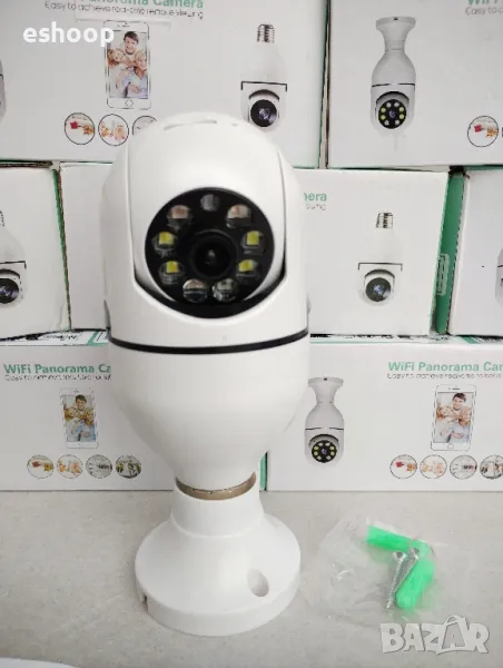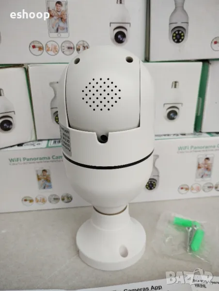 Водоустойчива безжична камера тип крушка с ъгъл на видимост 360° и вграден микрофон.