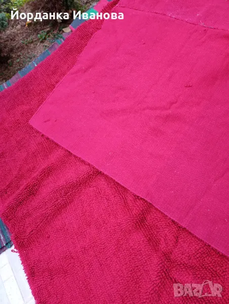 Продавам домашно тъкан килим от чиста вълна,червен,малко използван.