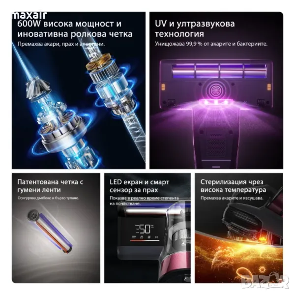 JIMMY BX8 предлага мощно решение за премахване на акари, бактерии и алергени чрез UV светлина, ултразвук, висока температура и високочестотни вибрации. С функция за интелигентно разпознаване на прах и акари, тя осигурява оптимално почистване на матраци, дивани и текстилни повърхности, като поддържа дома ви хигиеничен и свеж.