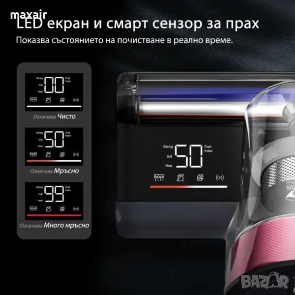Само за 5 секунди работната температурата достига 65℃, като по този начин прониква в дълбочина в дивани и матраци. Бързо унищожава акарите и бактериите, за да можете да се насладите на комфорт дори във влажни дни.