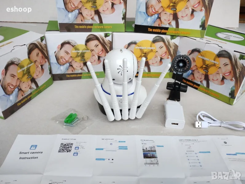 - Може да работи с Wi fi или да записва без Интернет ( с адаптер, включен в комплекта) . Във втория случай всички файлове се запазват в SD картата.