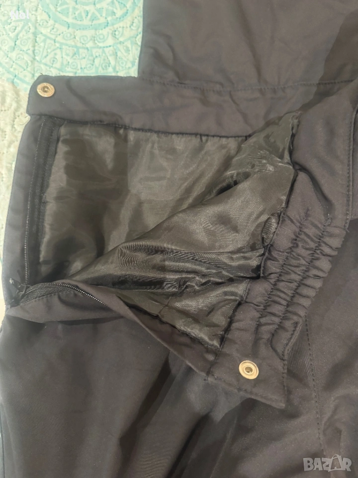 С платки отпред и отзад над кръста, регулируеми презрамки, 3 джоба. Цип отпред и отстрани за закопчаване. Допълнителни крачоли с ластик и силикон.