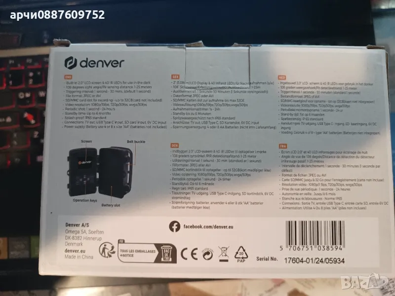 ЛОВНА КАМЕРА DENVER WCT-8010MK2 4K 8 Megapixel ВАЖНО ....работи и с Tipe C