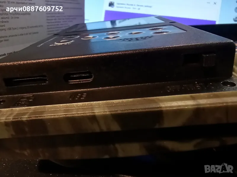 Connections: tv out, USB-C input, MicroSD card input