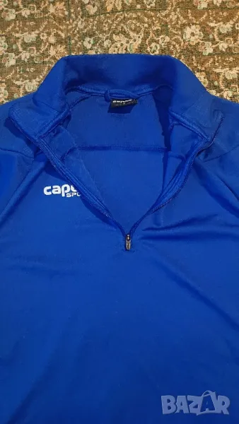 Ново. Отговаря на размер - М. Който обича прилепнало - L. Между мищниците 50 см. (разтегливо). От рамо до долу 55 см. (отзад по-дълго). Ръкав мерен от мищница 56 (предвиден да влиза палеца в него). Създадено, за да ви държи прохладно, удобно и заредени с енергия, докато тренирате в по-хладните дни, мъжкото горнище за тренировки Madison ¼ Zip Capelli Sport е професионално облекло за активен спорт със стилно, спортно-шик излъчване. Това горнище с дълъг ръкав разполага с технология CS-Cool за предотвратяване на натрупването на излишна телесна топлина и управление на изпотяването. Невидимите отвори за палеца на ръкава и дългият заден подгъв осигуряват допълнително покритие, а техническата разтеглива материя от смес от полиестер/спандекс придава на това горнища неограничително усещане.