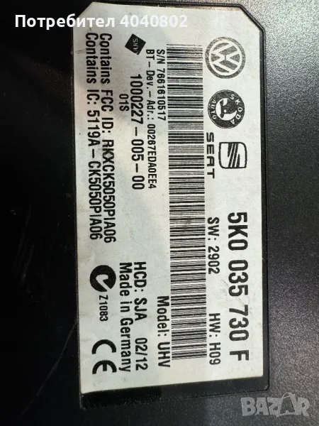 Блутут модул Фолксваген група 5K0035730F → Обява 47954832