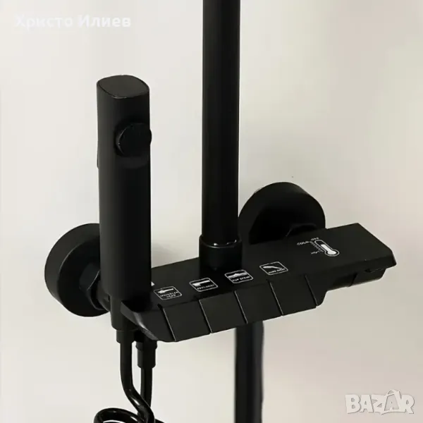 Душ система със стенен термостатен смесител Черен