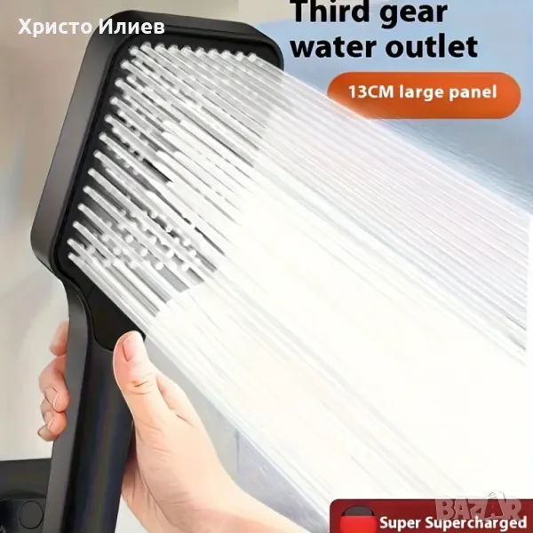 - Ръчен душ с възможност за регулиране на височината и ъгъла и три режима на работа и бутон за превключване между тях