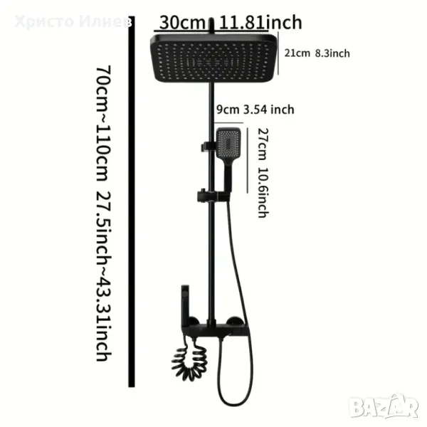 Предлага се в 2 вариант. Душ слушалката да е в кръгла или правоъгълна форма.