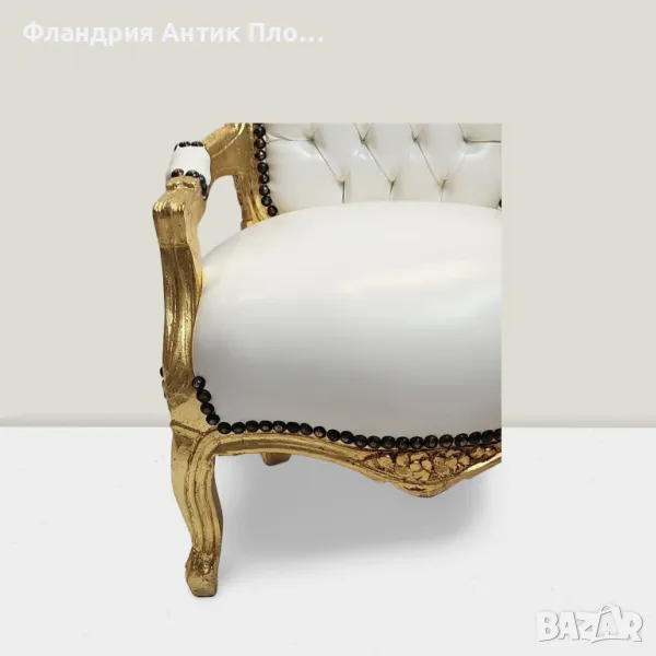 Изработка от масивно дърво в бял цвят,тапицерия от бяла еко кожа, декорирана с кабари.