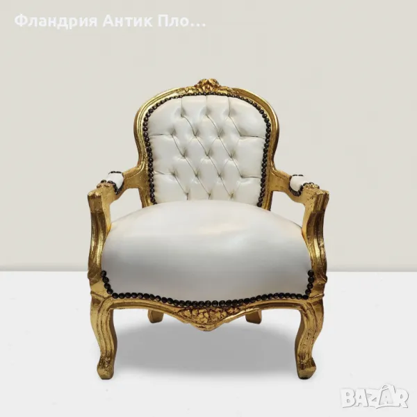 Приказно детско кресло с подлакътници, изпълнено в класически стил.