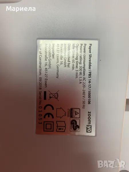 Чисто нов Унищожител на документи Monolith PBS-14-17 Cross 14 литра / Шредер
