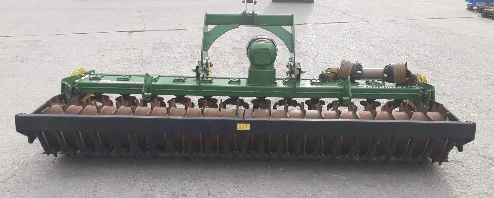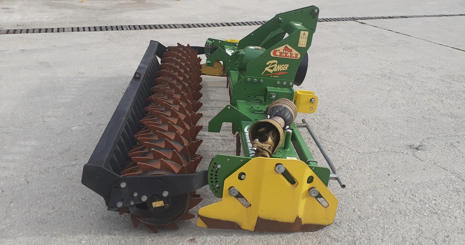 Активна брана CELLI, модел RANGER 300 производство 2020 г. - произход Италия - тип навесена (заден навес) - работна ширина 300 см - транспортна ширина 310 см - задвижване - трактор ВОМ 540 об/мин - тип /брой/ работни органи вертикални ножове/ 24 бр - работна дълбочина до 28 см - маса приблизително 990 кг - необходима мощност мин 85 максимум 120 к. с.