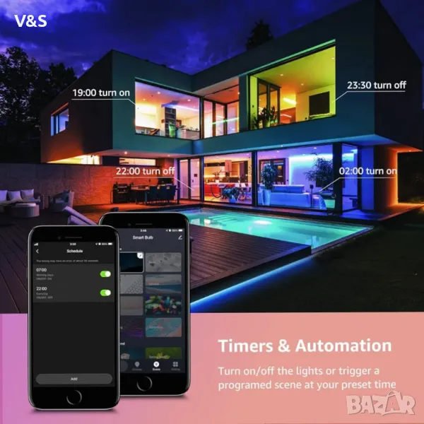 【Задайте таймери】 Планирайте крушките си да се включват или изключват автоматично в предварително зададено време (напр. светлината свети, когато се прибирате всяка вечер, държи крадците настрана, когато не сте у дома)