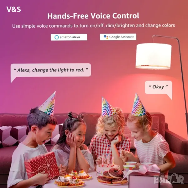 【Опростено гласово управление】 Работи с Alexa (включително Echo, Echo Dot) и Google Home, позволява ви да контролирате светлините със свободни ръце с една гласова команда.