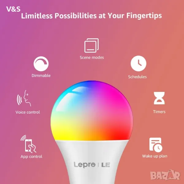 Смарт крушка Lepro E27, интелигентни крушки с винт, променящи цвета смарт E27 LED.2 броя, димируема