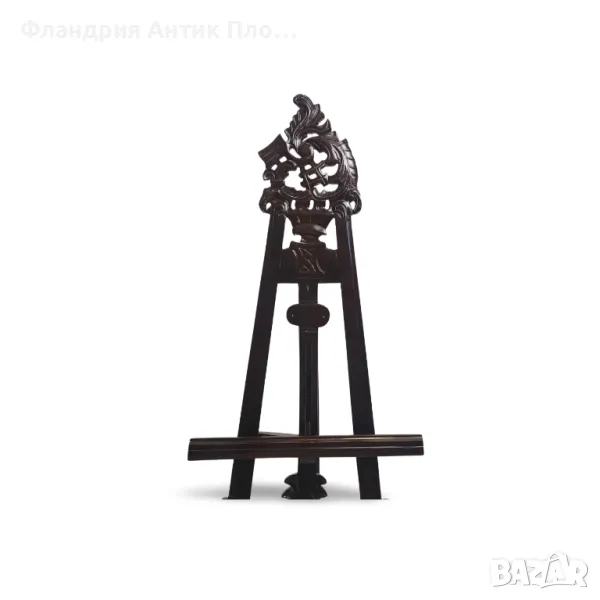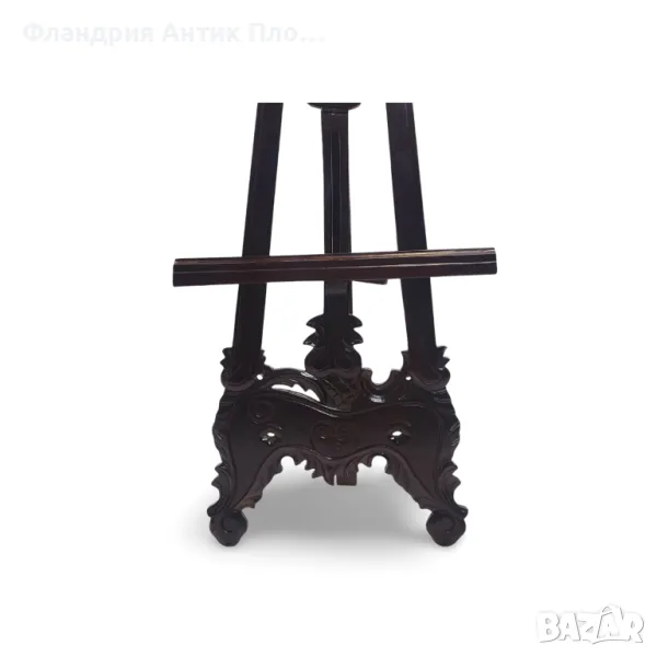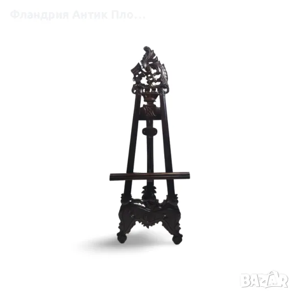 Добре дошли в нашия магазин за изкуство, където можете да откриете този изящен дървен статив за експозиция на вашата картина, вдъхновен от старинните времена, украсен с изящни дърворезби.