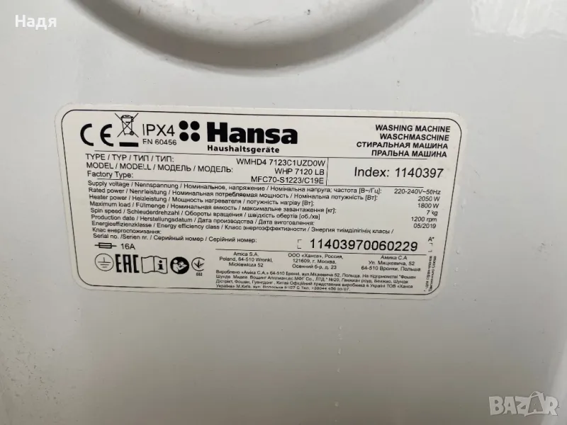 Пералня Hansa -WHP 7120LB ,7кг,А+++ за части → Обява 47957385