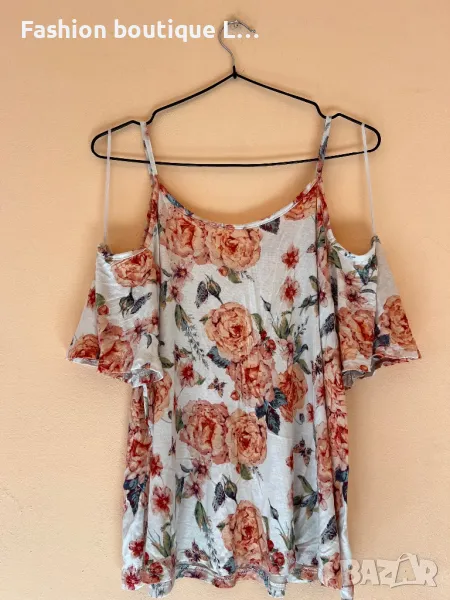 Памучна блуза с флорален десен къс ръкав и изрязан детайл на раменете 🌻🌼🌸🌺