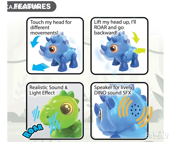 - Интерактивен робот Дино, който идва и си отива с едно докосване!