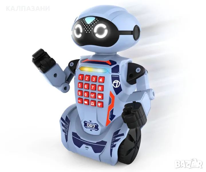 Представяме ви ROBO DR7, програмируем робот със 7 невероятни функции! Можете да използвате дистанционното за директно управление или програмиране и за първи път имаме робот YCOO, който може да говори английски, което означава, че може да разказва различни истории, да играе математически викторини с децата! Може също така да говори с роботизиран глас, да танцува или просто да го слушате, възпроизвеждайки предварително зададена музика!