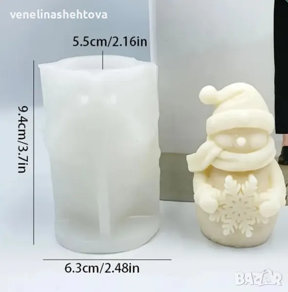 2 модела 3D снежен човек с елха снежинка Силиконов молд форма за свещи гипс сапун смола → Обява 47958354