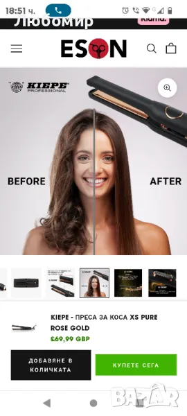 Специални характеристики: Бързо нагряване, Контрол на температурата, Гъвкав кабел, Йонизация и Автоматично изключване