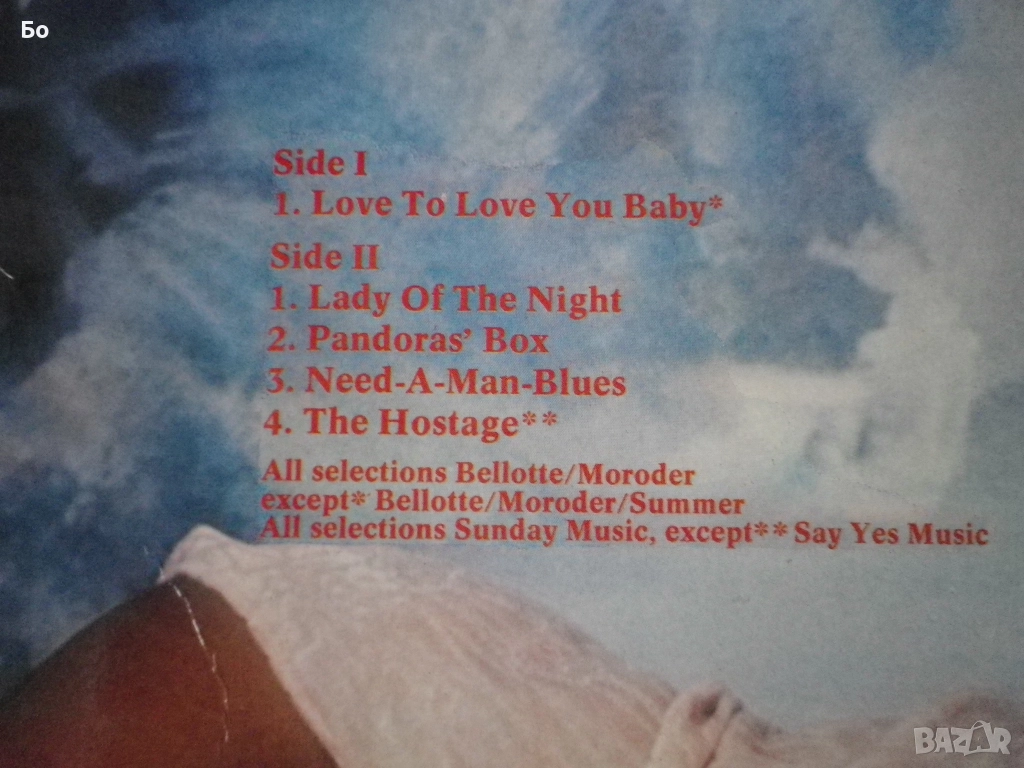 Love to love you baby' 1975 Ger.lp. B side-4tr. VG+/VG+ 15€