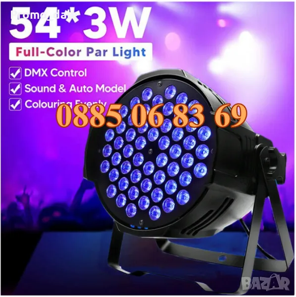 Диско прожектор 54 LED 3W RGBW LED Par - Lighting Ефект