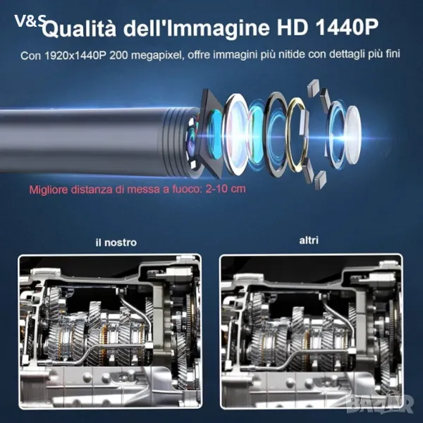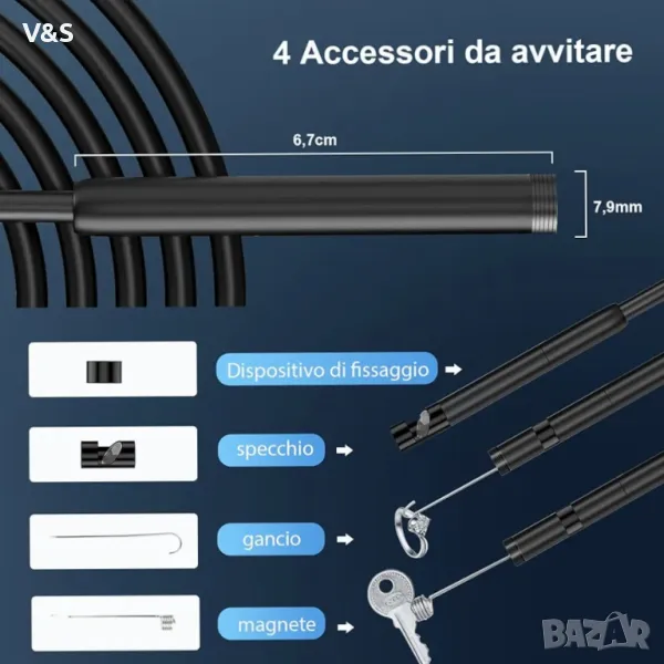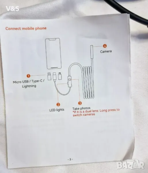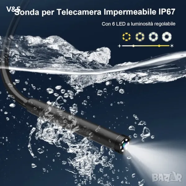 камера, бороскоп Lightswim Type C, оптична камера с 8 LED светлини за Android и iOS смартфон, iPhone, iPad, Samsung (16,5 FT/5M)Най-новата версия на ендоскопа работи с Android 4.4+ и iPhone със система iOS 9+. Също така идва с iPhone/Micro-USB адаптер. Важна забележка: Приложимо само за смартфон/таблет с Android с OTG и USB UVC функция, препоръчваме ви да инсталирате безплатно приложение „USB OTG CHECKER“, за да проверите OTG преди покупка. iPhone просто Plug and Go. Не пасвайте на компютър. [ 1920P HD резолюция] 2.0MP канализационна камера ви предлага прекрасно изживяване при заснемане на ясно HD видео и изображение от близко разстояние с резолюция 1920x1440. 16,5 FT (5M) полутвърд кабел, въртене на 360 градуса за лесно избиране на гледна точка. [Лесно свързване] Изтеглете и инсталирайте приложението „Useeplus“ на вашето устройство. Нека кабелът на ендоскопа да се свърже с вашия смартфон. С прости операции можете да преглеждате изображения в реално време на екрана. [Водоустойчив дизайн] IP67 Водоустойчива сонда с диаметър 7,9 mm, идваща С 8 регулируеми LED светлини и тънка водоустойчива сонда, този ендоскоп е подходящ за различни видове среда, например слабо осветена или тъмна зона, влажна или мокра зона и т.н.