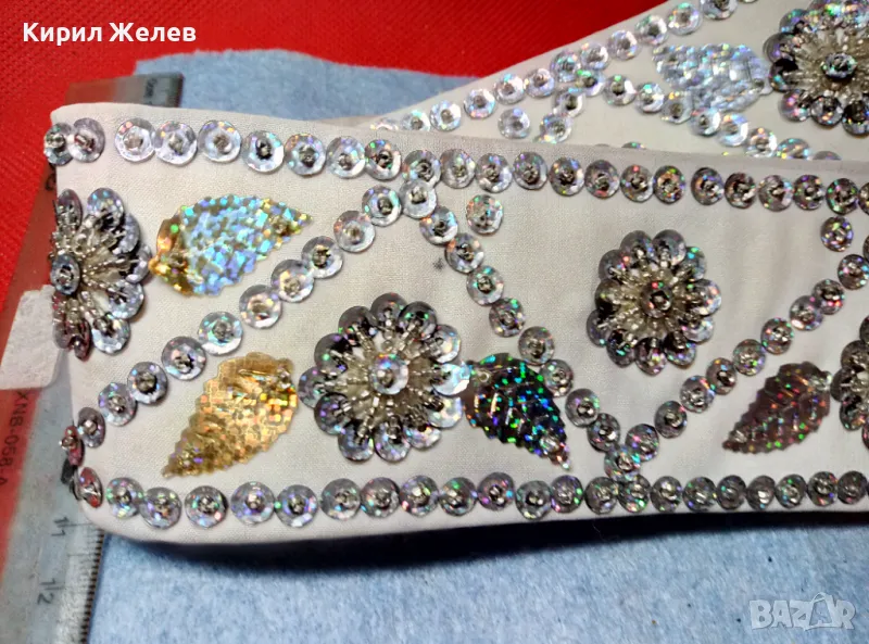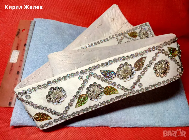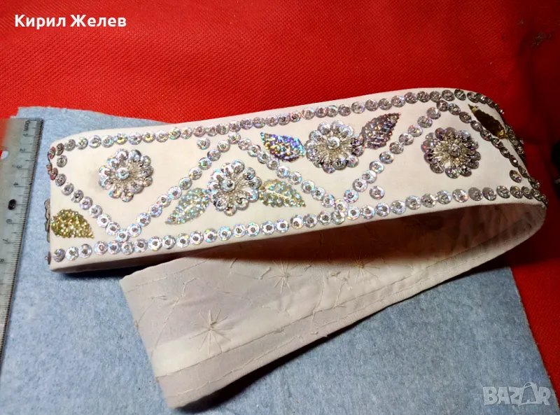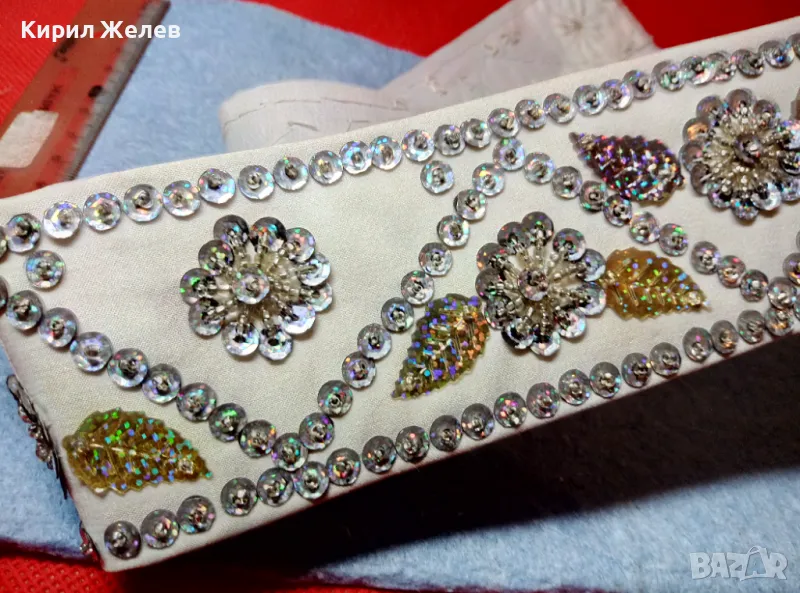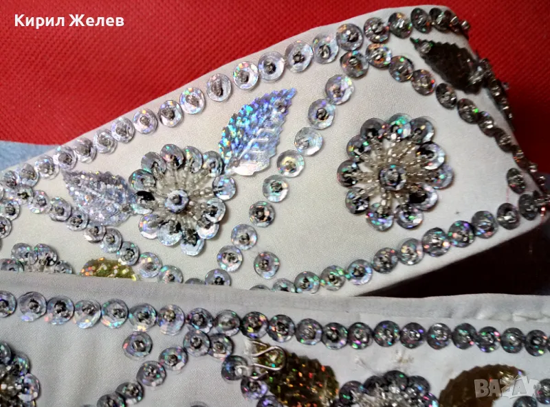 Стар ЕТНОГРАФСКИ ДАМСКИ КЕНАРЕН КОЛАН УКРАСЕН с ФЛОРАЛНИ МОТИВИ от БЛЕСТЯЩИ ПАЙЕТИ 47651 → Обява 47962873