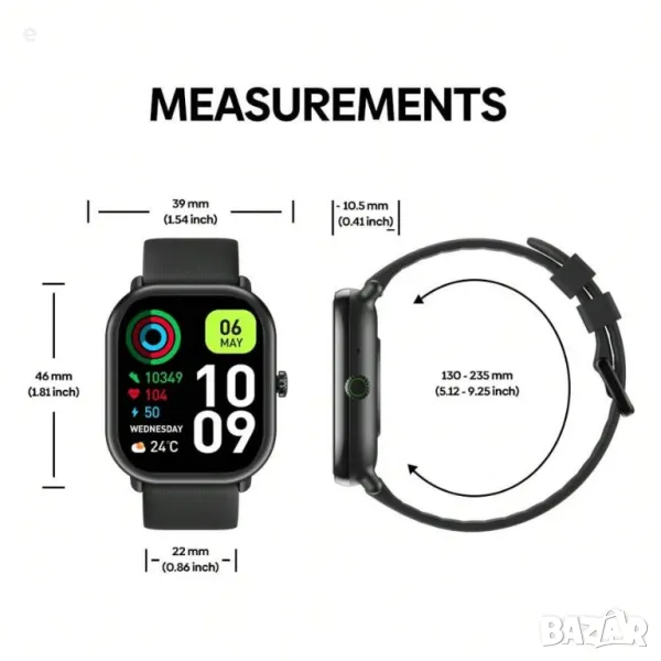 【Вашият интелигентен партньор】 Синхронизирайте го с телефона си, получавайте известия за SMS/телефонно обаждане/приложение и контролирайте възпроизвеждането на музика/камерата на телефона си директно на китката си. Интелигентният часовник ще предлага също така функции за напомняния за заседнал начин на живот, режим „Не безпокойте“, списък със задачи и прогноза за времето, както и възможност за настройка на аларми и хронометри.