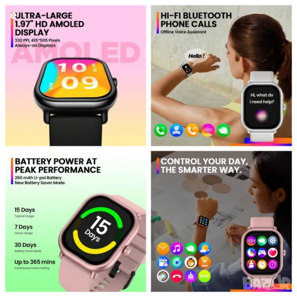 • Възможност за гласови повиквания: Този смарт часовник поддържа гласови повиквания, което ви позволява да извършвате и получавате повиквания директно от китката си, което го прави идеален за тези, които са в движение.
