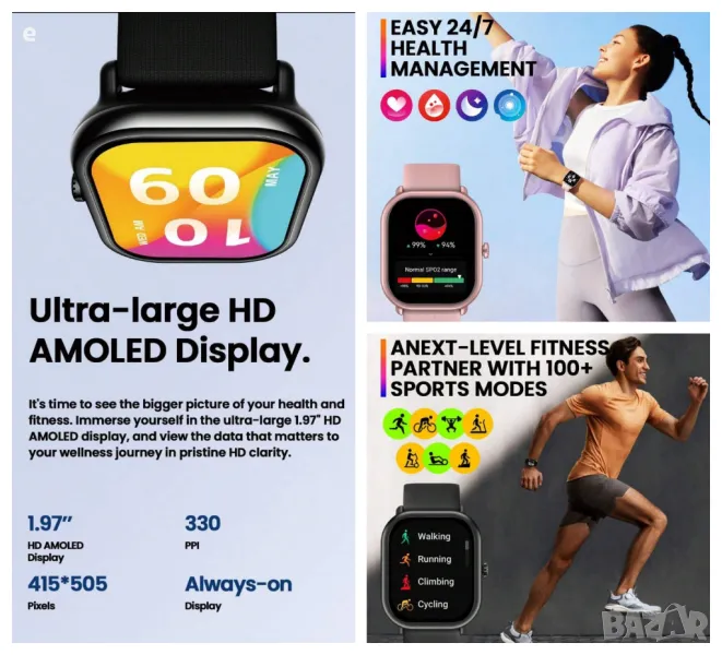 • Възможност за гласови повиквания: Този смарт часовник поддържа гласови повиквания, което ви позволява да извършвате и получавате повиквания директно от китката си, което го прави идеален за тези, които са в движение.