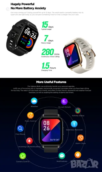 • Възможност за гласови повиквания - Часовник, който ви държи истински свързани. Влезте в един добре свързан свят с „Zeblaze Btalk“, който ви позволява да управлявате вашите обаждания – приемайте обаждания, набирайте от дневниците на последните повиквания, достъпвайте любими контакти и оставяйте телефона си в джоба си.